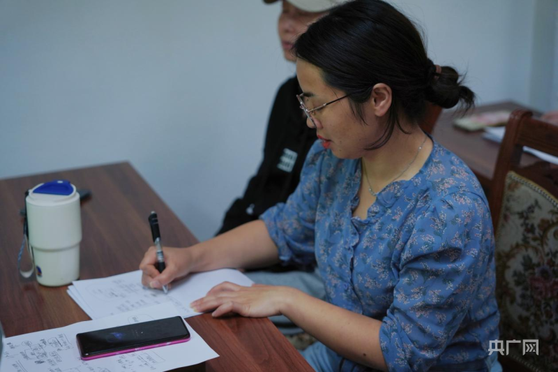 谢丹认真地记笔记(央广网发 张蔓 摄)