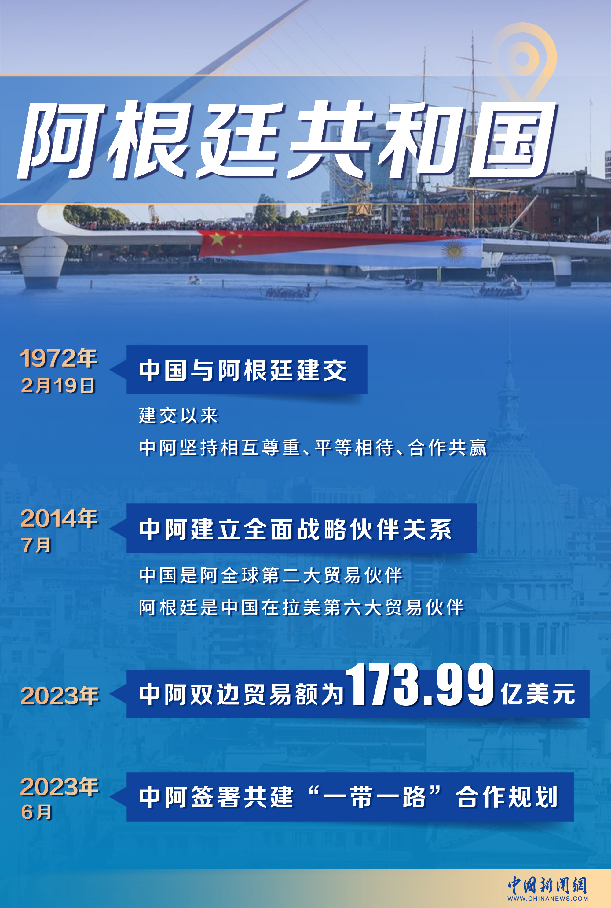 中国是阿根廷全球第二大贸易伙伴,而阿根廷也已成为中国在拉美的第六大贸易伙伴。2023年,双边贸易额达到173.99亿美元。