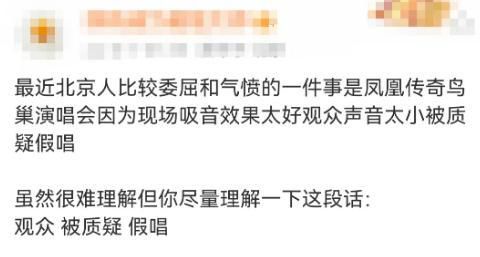 因为5月4日凤凰传奇演唱会北京站的观众合唱声音小,网友质疑场内观众在假唱: