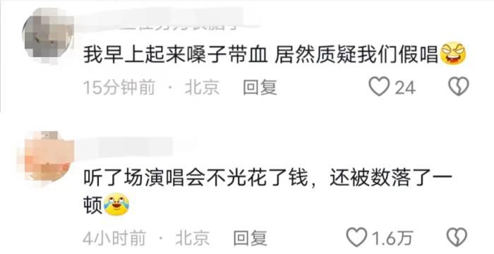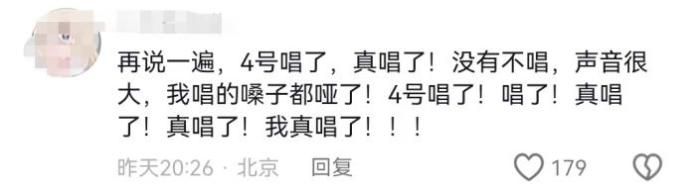 各位网友“清汤大老爷们”啊!咱真的百口莫辩,嗓子是当晚哑的,胳膊是6号抬不起来的,为了洗刷“北京观众假唱”的冤屈,都快唱yue了。