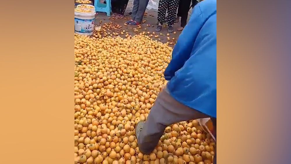 5月8日,有网友发视频称重庆枇杷滞销,村民忍痛将千余斤成熟枇杷踩碎。视频中,有果农将整背篓的枇杷直接倒在地上,画外音称:“枇杷卖不脱(出去),你看嘛,一背(篓)一背(篓)就像这样倒了。”另一段视频显示,有果农一边往地上倒枇杷,一边用脚踩踏枇杷。还有人大喊:“不要了,不要了”。