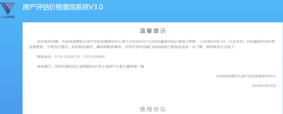 5月10日,深圳房产评估价格查询系统V3.0发布提示,深圳市自然资源和不动产评估发展研究中心将于2024年5月11日对存量房评估价格进行更新。