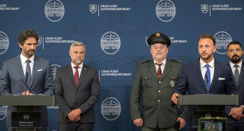 当地时间5月19日下午,斯洛伐克副总理兼国防部长卡利尼亚克、内政部长埃什托克等就斯洛伐克国内安全局势召开了新闻发布会。