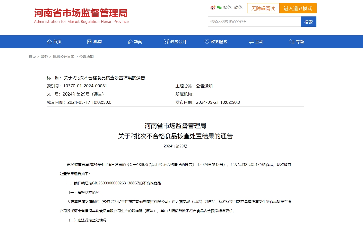 河南通报2批次不合格食品核查处置结果