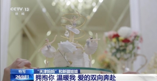 则拉来是新疆班的一名高三学生,一年前她走进了“天津妈妈”牛艳的家中。当时她来到牛妈妈家中还是一个腼腆的姑娘,如今她已经在这里找到了家的感觉。而且能歌善舞的则拉来在学校里就是舞蹈队骨干,而牛艳的女儿梅潇文也是学习古典舞,两个孩子曾经在聊天中说到牛妈妈曾经也有一个舞蹈梦,只是在那个年代很难实现,所以在今年母亲节两个女儿为妈妈共同挑选并亲手制作了蛋糕。