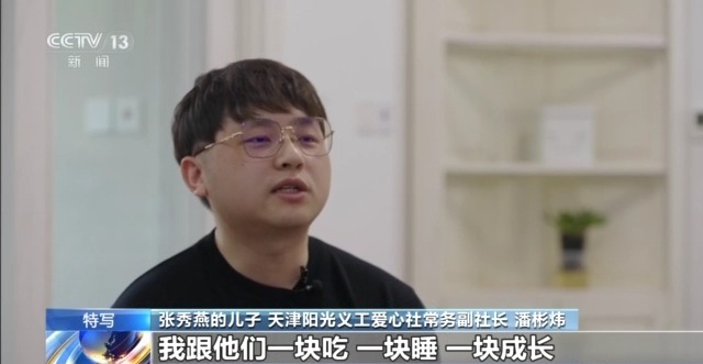 张秀燕的儿子、天津阳光义工爱心社常务副社长 潘彬炜:从高中开始,每个周末弟弟妹妹们来家里做客,我跟他们一块吃、一块睡、一块成长,现在全国各地有这么多的兄弟姐妹们,我特别自豪。在我大学毕业之后拿到了工资,我觉得有这个能力了,我也就开始去参与这件事情,现在妈妈也年纪大了,我觉得我可以把这件事情传承下去。