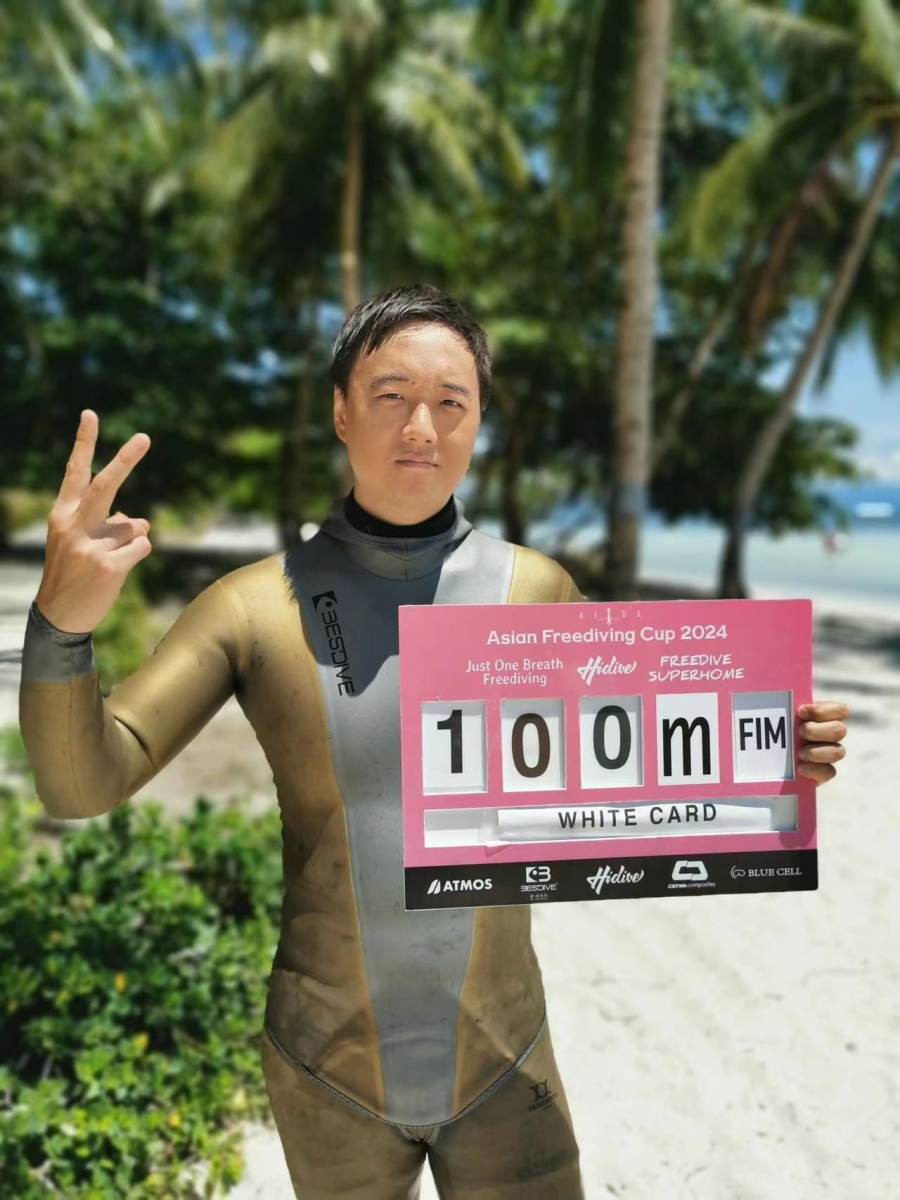 5月26日至6月5日,2024年自由潜水亚洲杯深度赛在菲律宾邦劳岛举行,来自世界各地的百名顶尖潜水员齐聚一堂,突破自己的极限。在亚洲自由潜水杯FIM(攀绳下潜)项目比赛中,河南选手于志瀛发挥出色,取得攀绳下潜(FIM)100米白牌,并获得该项目的第三名。这个成绩目前在中国排名第三、亚洲排名第六。至此,于志瀛也成为中国第一个破攀绳下潜百米的90后潜水员。