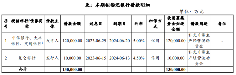 募集说明书显示,本期中票13亿元拟用于偿还有息债务,2亿元用于补充流动性资金。