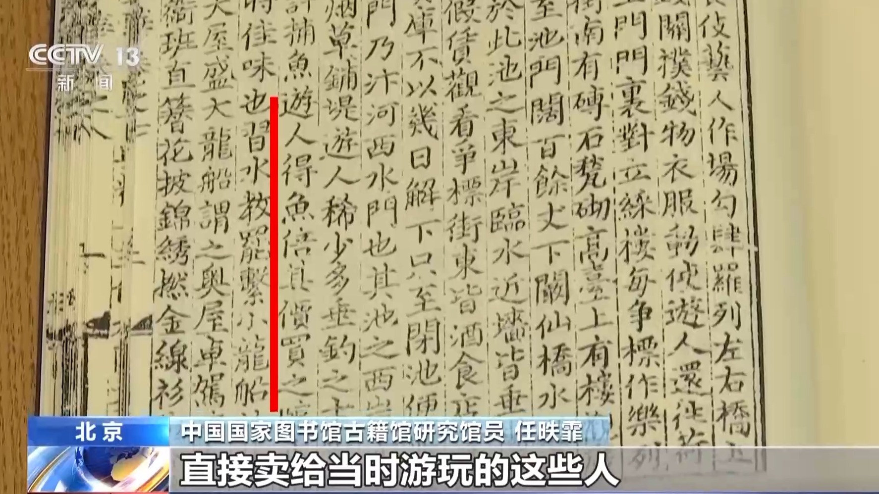 中国国家图书馆古籍馆研究馆员 任昳霏:在湖边就有人垂钓,垂钓上来的鱼是不是最新鲜了。当地的人说我们可以垂钓的这些鱼,直接卖给当时游玩的这些人,当时就宰杀做成生鱼片来吃。
