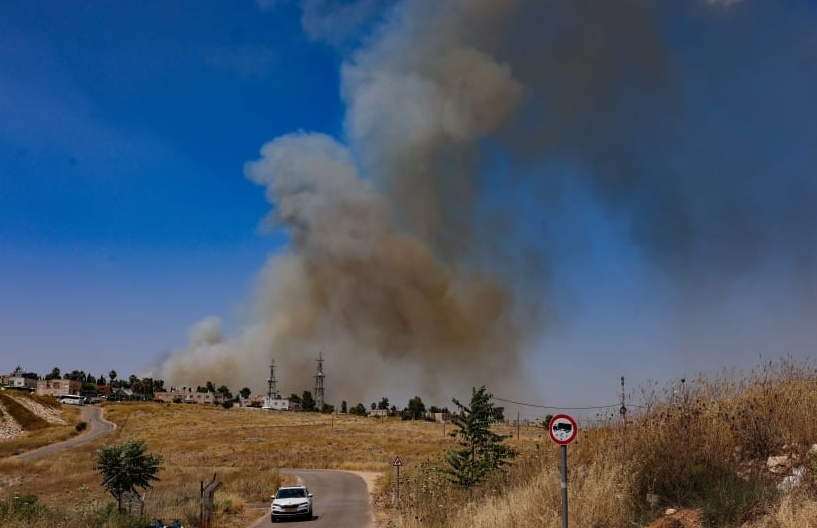 △6月13日,以色列北部采法特遭袭后发生大火。