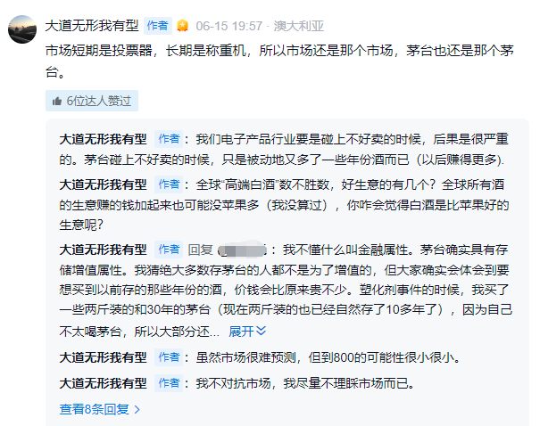 关于茅台的金融属性,段永平也发表了自己的看法。他表示,我不懂什么叫金融属性。茅台确实具有存储增值属性。我猜绝大多数存茅台的人都不是为了增值的,但大家确实会体会到要想买到以前存的那些年份的酒,价钱会比原来贵不少。