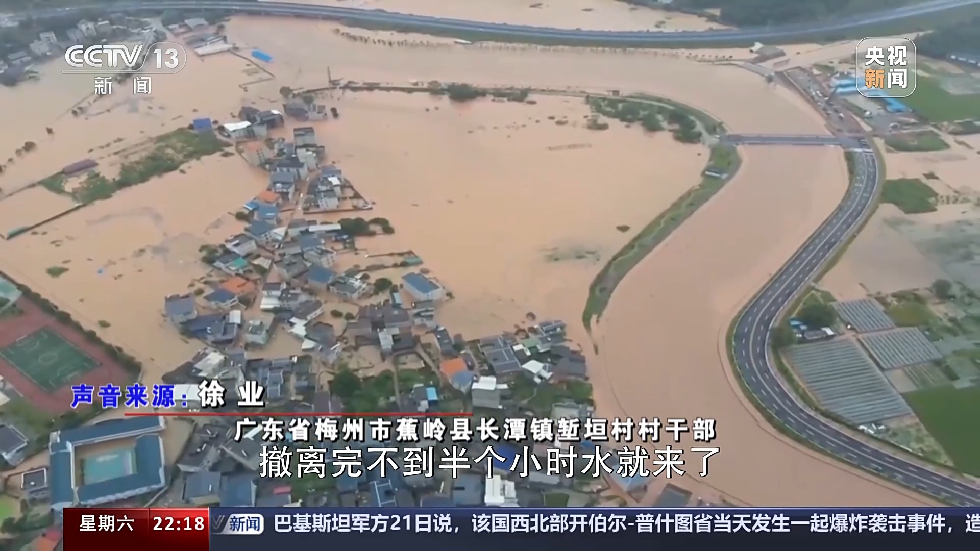广东省梅州市蕉岭县长潭镇堑垣村村干部 徐业:6月16日晚上9点多钟,收到我们当地水务局通知,撤离完不到半个小时水就来了,晚上10点多钟的时候水就已经到膝盖了。