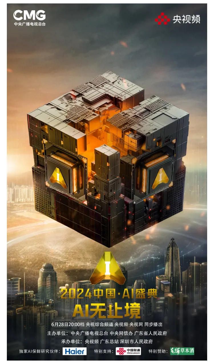 AI无止境,携手创未来。6月28日20:00档,由中央广播电视总台、中央网络安全和信息化委员会办公室、广东省人民政府联合主办,总台央视频、广东总站携手深圳市人民政府共同制作的特别节目《2024中国·AI盛典》将在总台央视综合频道、央视频、央视网等平台同步播出。