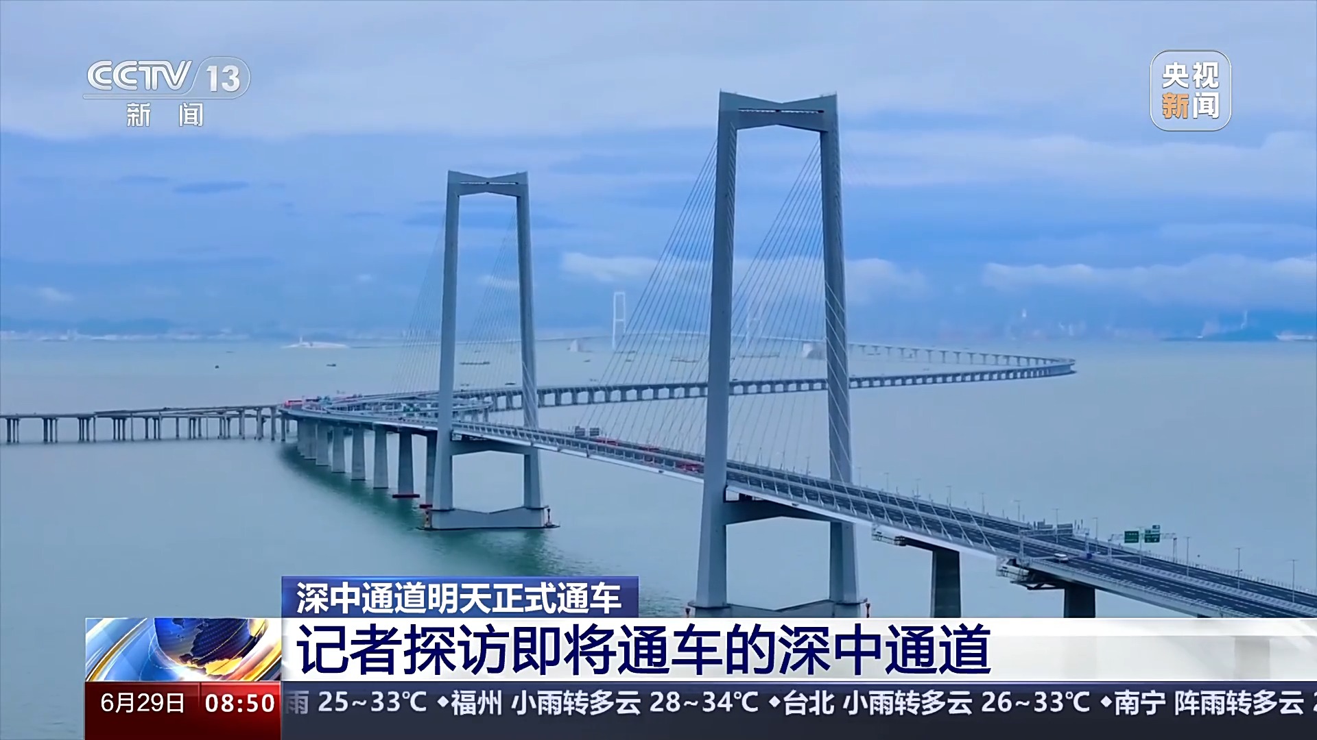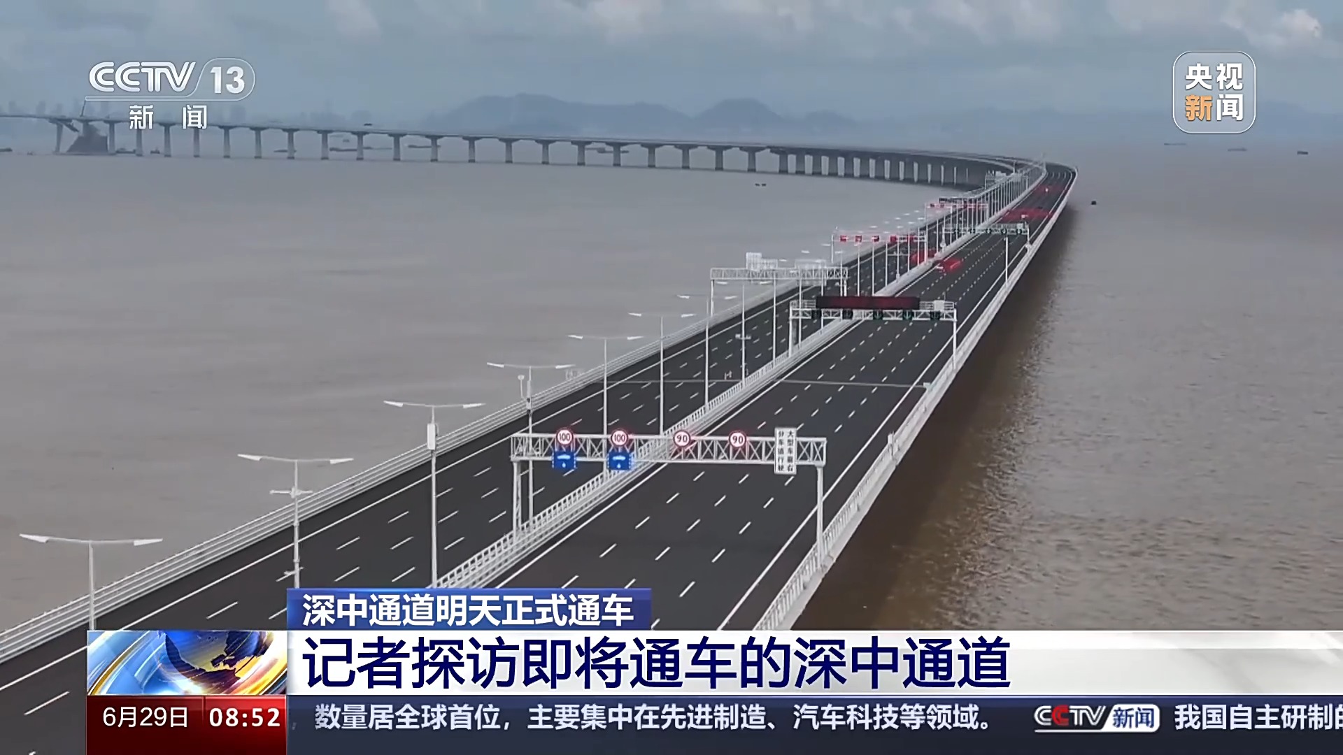 国家重大工程深中通道将于6月30日15时正式通车试运营。深中通道全长约24公里,通车后,从深圳到中山的车程将从目前的2小时缩短至30分钟。深中通道横跨珠江口东西两岸,是当前世界上综合建设难度最高的跨海集群工程之一。行驶在深中通道上的体验如何?接下来我们就跟随记者一起去感受一下。