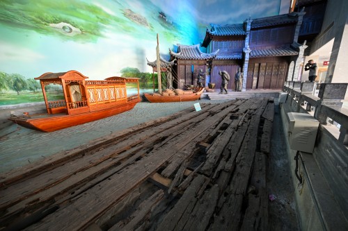 博物馆工作人员介绍,1999年柳孜运河遗址考古发掘是我国隋唐大运河建筑遗址的首次发现,清理出石构建筑、木质沉船、瓷器、铜钱等一批重要的遗迹遗物。