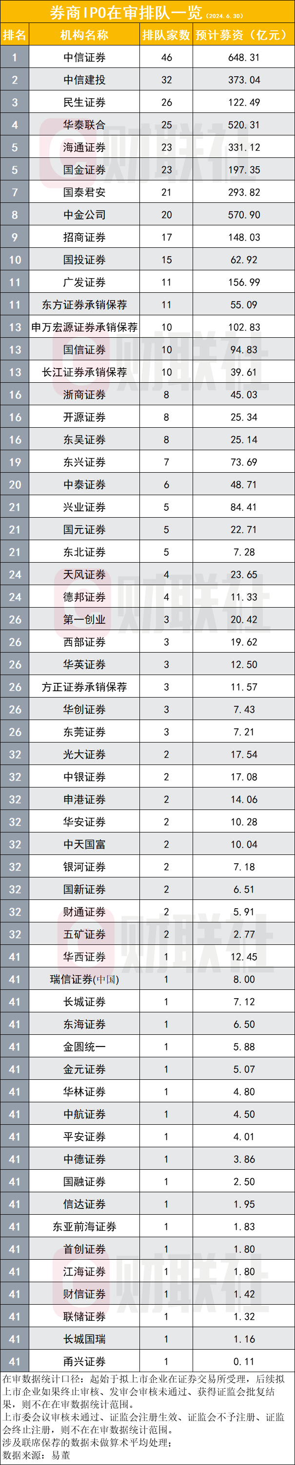 在审项目涉及59家券商,预计募资额合计为3978.41亿元。
