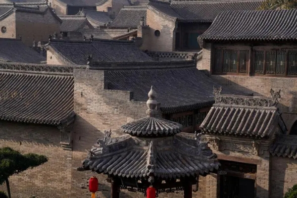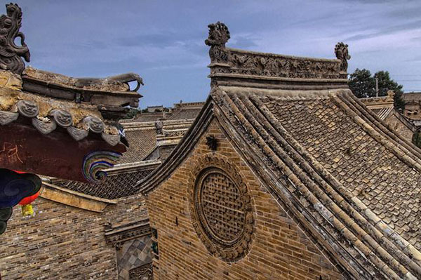 图为运城李家大院屋顶,置有北方少见的五尾望兽。