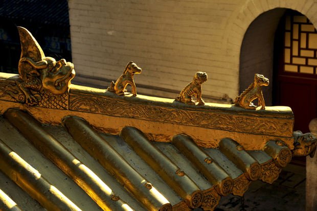 走兽也叫蹲兽或跑兽,常驻扎在屋檐垂脊之上。垂脊上的走兽越多,就代表着房屋主人的地位和权势越高。