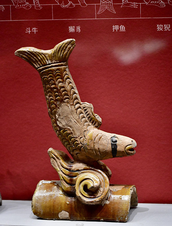 “狎(xiá)鱼”也叫“押鱼”,声通“下雨”,在神话传说中是一种海中异兽,因其有兴云作雨的能力故得名。人们将其安置在屋脊上,祈求降雨解旱、防火避灾。