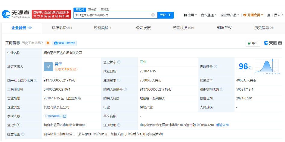 【大河财立方消息】天眼查App显示,近日,烟台芝罘万达广场有限公司发生工商变更,原全资股东大连万达商业管理集团股份有限公司退出,新增坤华(天津)股权投资合伙企业(有限合伙)、坤元辰兴(厦门)投资管理咨询有限公司为股东,分别持股约99.99%、0.01%,同时多位主要人员发生变更。此前不久,该公司注册资本已由5000万人民币增至7.08亿人民币。