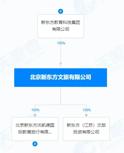 天眼查App显示,北京新东方沃凯德文化创意有限公司,为北京新东方沃凯德国际教育旅行有限公司的全资子公司,由北京新东方文旅有限公司(以下简称新东方文旅)全资控股。新东方文旅成立于2023年7月,注册资本10亿元,由俞敏洪担任法定代表人、董事长。