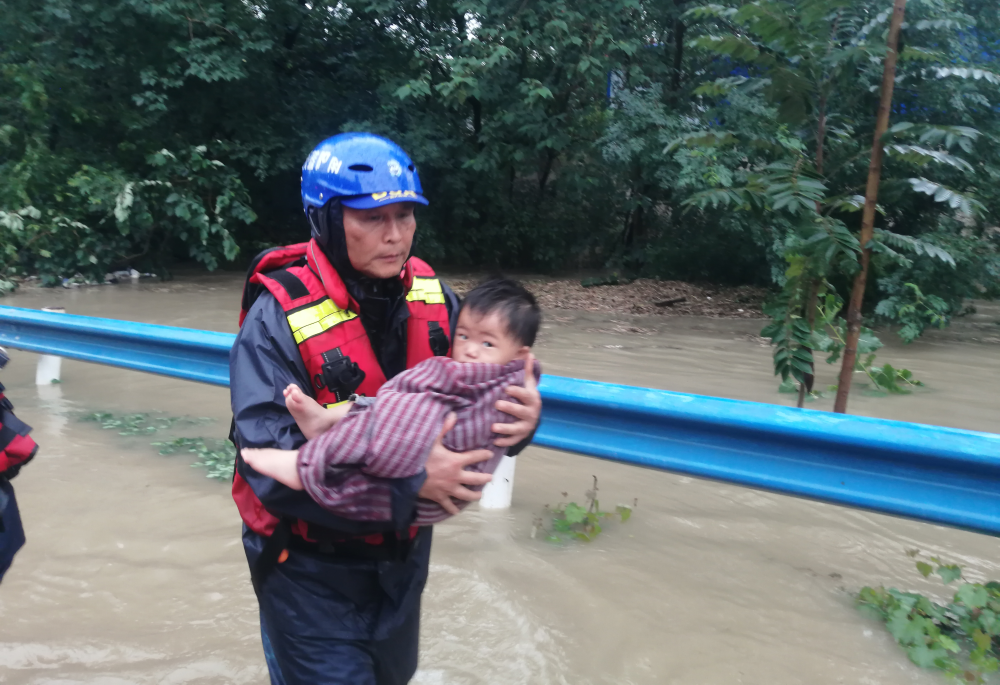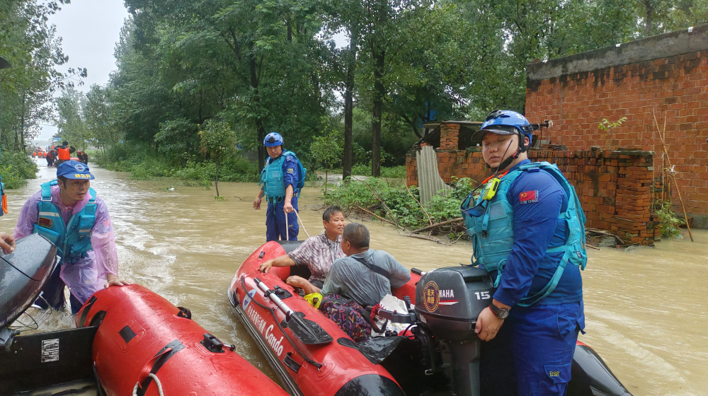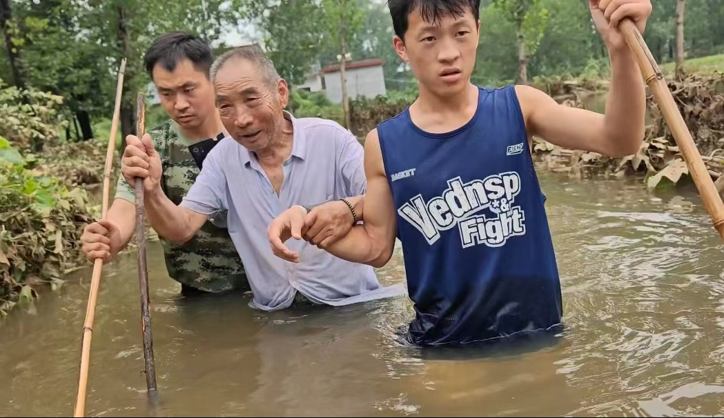 7月14日,因强降雨导致新野县、邓州市、宛城区部分乡村洪涝灾害严重,急需协助转移被困群众。南阳市退役军人学雷锋志愿服务总队应急救援大队在范海涛大队长带领下,于凌晨携带救援器材由南阳出发,紧急奔赴新野县、邓州市、宛城区受灾一线组织抢险救援。在暴雨如注、洪水肆虐的险恶环境下,他们驾驶着救援艇,勇敢地劈波斩浪,在淹没的街道和乡村间不断穿梭,不顾个人安危,一次次深入险境,将被困群众转移至安全地点。经过连日奋战,到17日为止共转运被困群众约360余人。总队副秘书长胡明跃带领退役军人赴宛城区高庙镇、社旗县青台镇、卧龙区英庄镇参与一线抢险救援,携手救援人员转移灾民60余人。在青台镇北寨门,他不顾自身安危,冒着水下可能有暗流、深沟、水中漏电等危险因素跳入齐腰深的急流,为受灾群众中蹚出一条安全的转移通道。