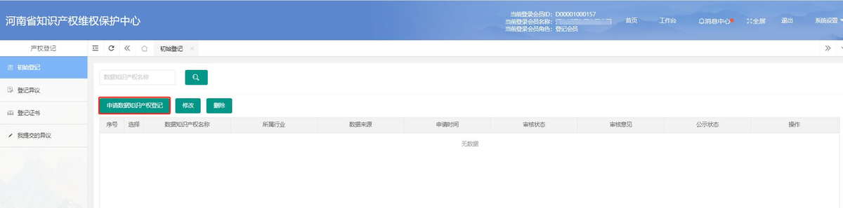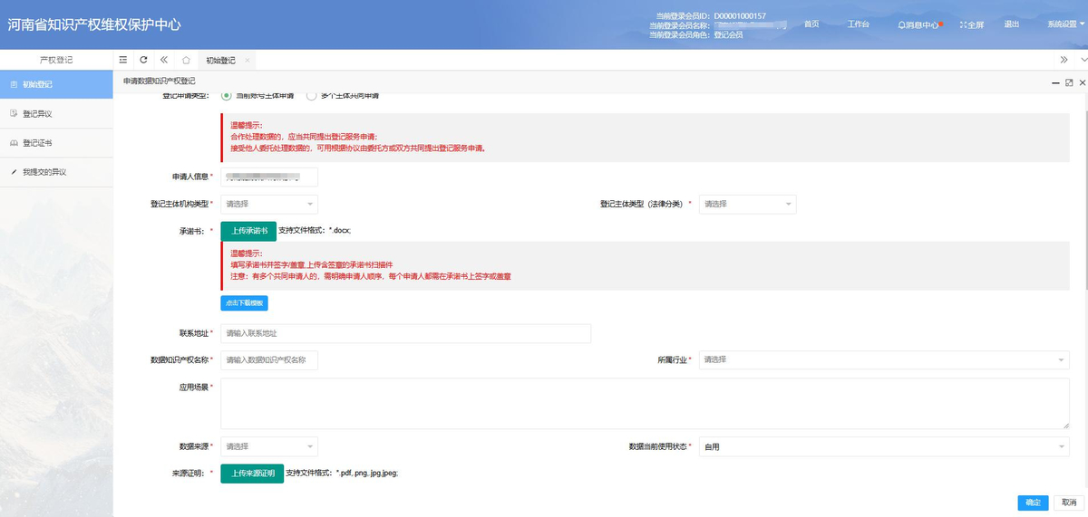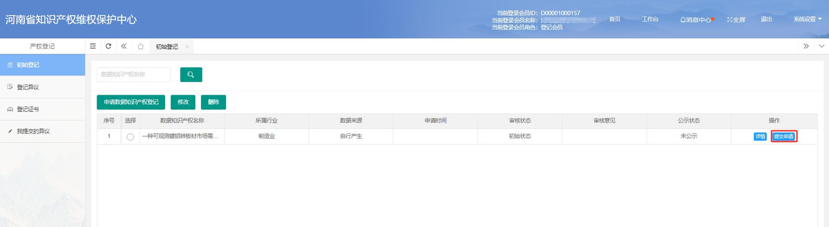 第三步:进行初始登记操作,申请数据知识产权的正式登记, 并细致完善所有相关的登记信息,确保信息的准确性和完整性。