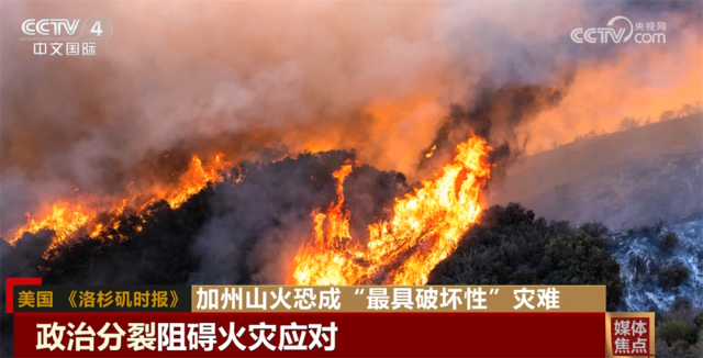 文章指出,在这场巨大的灾难面前,谎言和虚假信息已经够糟糕了,更糟糕的是,候任总统特朗普与加州州长、民主党人纽森之间就水资源分配政策和消防物资捐赠等问题产生争端。特朗普把山火归咎于纽森及其相关政策不利,并要求纽森辞职。民主党和现任总统拜登则强调不应将这场灾难政治化,共和党占多数的国会必须对救灾和重建措施予以放行。政治分裂成为火灾应对的一大障碍。利用灾难和灾难响应作为惩罚政治对手的筹码,对美国来说更是前所未有的打击。