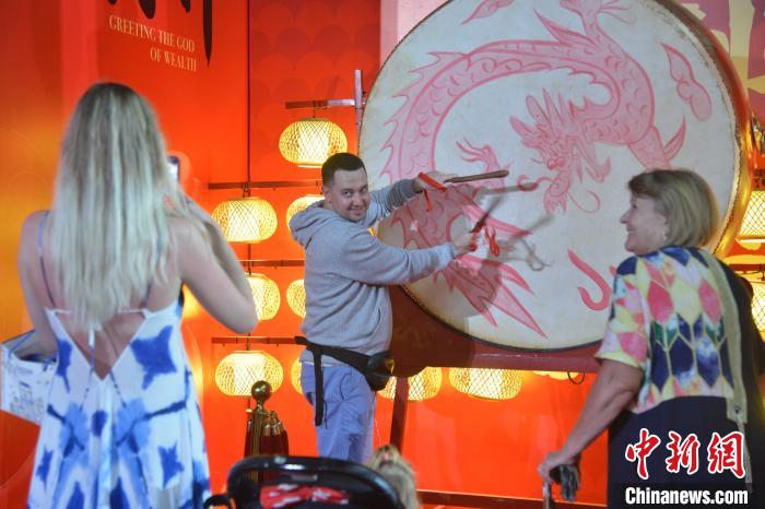 1月22日晚,“灵蛇贺三亚 温暖中国年”2025年三亚新春旅游文化系列活动之小年特别活动新春游园会举办,吸引众多俄罗斯游客前来体验中国年。张月和 摄
