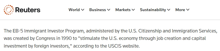 美国公民和移民服务局网站显示,EB-5签证是一种面向外国投资者的就业移民签证,由美国国会于1990年制定,旨在“通过创造就业机会和利用外国投资者的资本投资来刺激美国经济”。