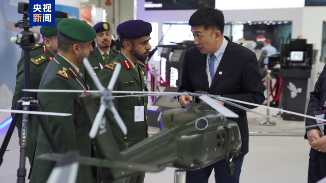 在本届阿布扎比防务展中,中国展馆以规模优势跻身最大国家展区行列。在醒目的“中国防务”标识之下,来自中国的近60家军贸公司集中亮相,展出的各类装备,既涵盖陆、海、空、天、电等传统安全领域,也包括有网络智能、无人机等新兴装备与军事科技,展示了中国国防科技工业先进能力和水平,为构建全球和平与安全提供中国方案。