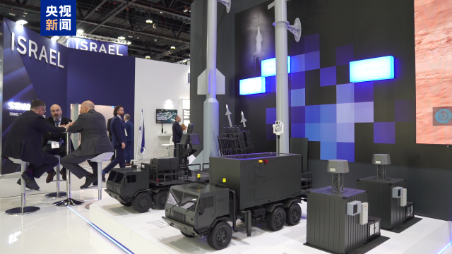 仍处于巴以冲突之中的以色列,这次派出了其国防部与国内29家军工企业参加阿布扎比防务展,囊括了以色列航空工业公司、拉斐尔先进防御系统公司等知名企业。在以色列展台,总台记者看到多款反无人机作战装备。比如,“第五代无人机卫士”ELI-4030。ELI-4030反无人机系统利用无人机的通信数据链路来检测、分类、跟踪与打击,可拦截多个低空低速空中目标。