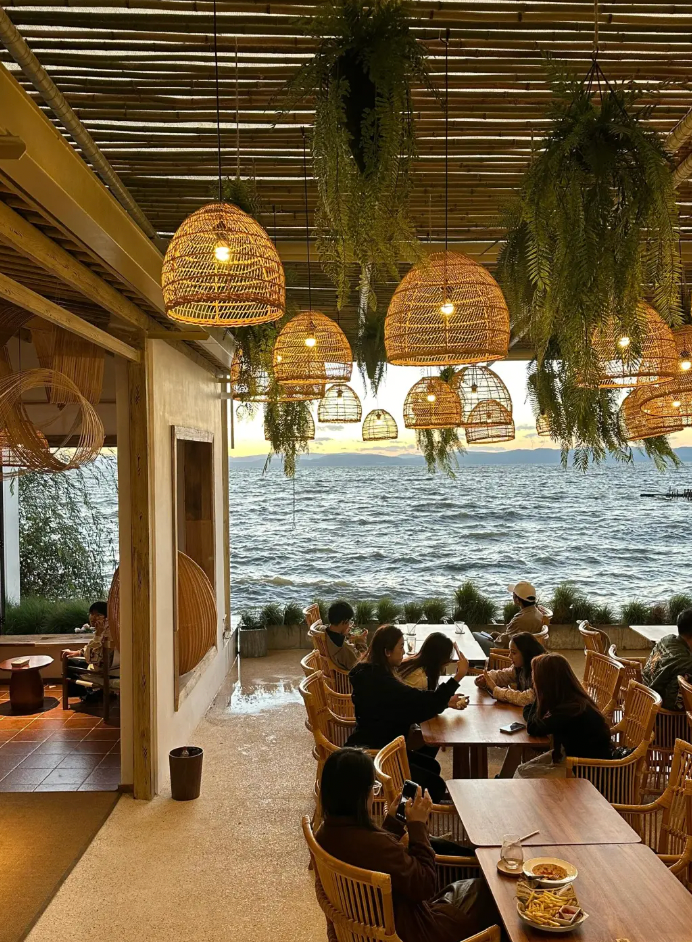 随便找一个“海景”座位,推门就撞见一片波光粼粼的蓝。晨雾未散时,这里像座飘浮的宫殿,落地窗把苍山云絮、潋滟水光统统框成会流动的装饰画。