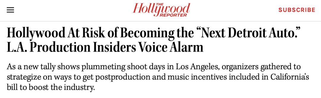 ||《好莱坞报道者》发表题为《好莱坞或成为下一个底特律》的文章,指出好莱坞最后可能只剩一具空壳。