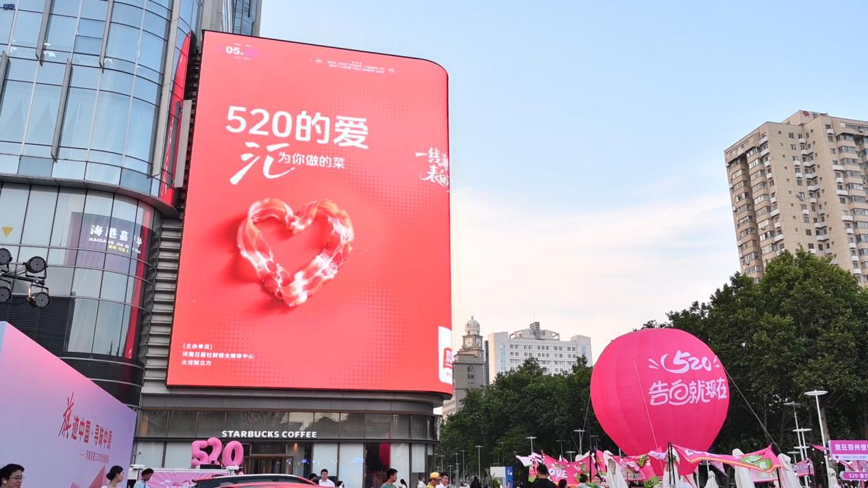 5月20日,“一线潮牌 表白河南”暨河南首届520时尚消费节在郑州万达坊举行。作为一线潮牌代表企业,双汇以创新形式实力“圈粉”——不仅在“光影双幕”裸眼3D大屏上深情告白“520的爱,汇为你做的菜”,更在大屏之下打造特色展台,携多款美味食品与观众甜蜜互动。
