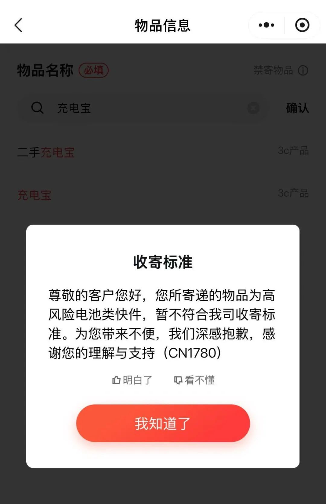 除了顺丰外,京东快递、极兔速递、菜鸟速递以及中国邮政等快递公司也表示,炎炎夏日为减少充电宝等电子产品燃爆风险,暂停揽收充电宝相关快件。