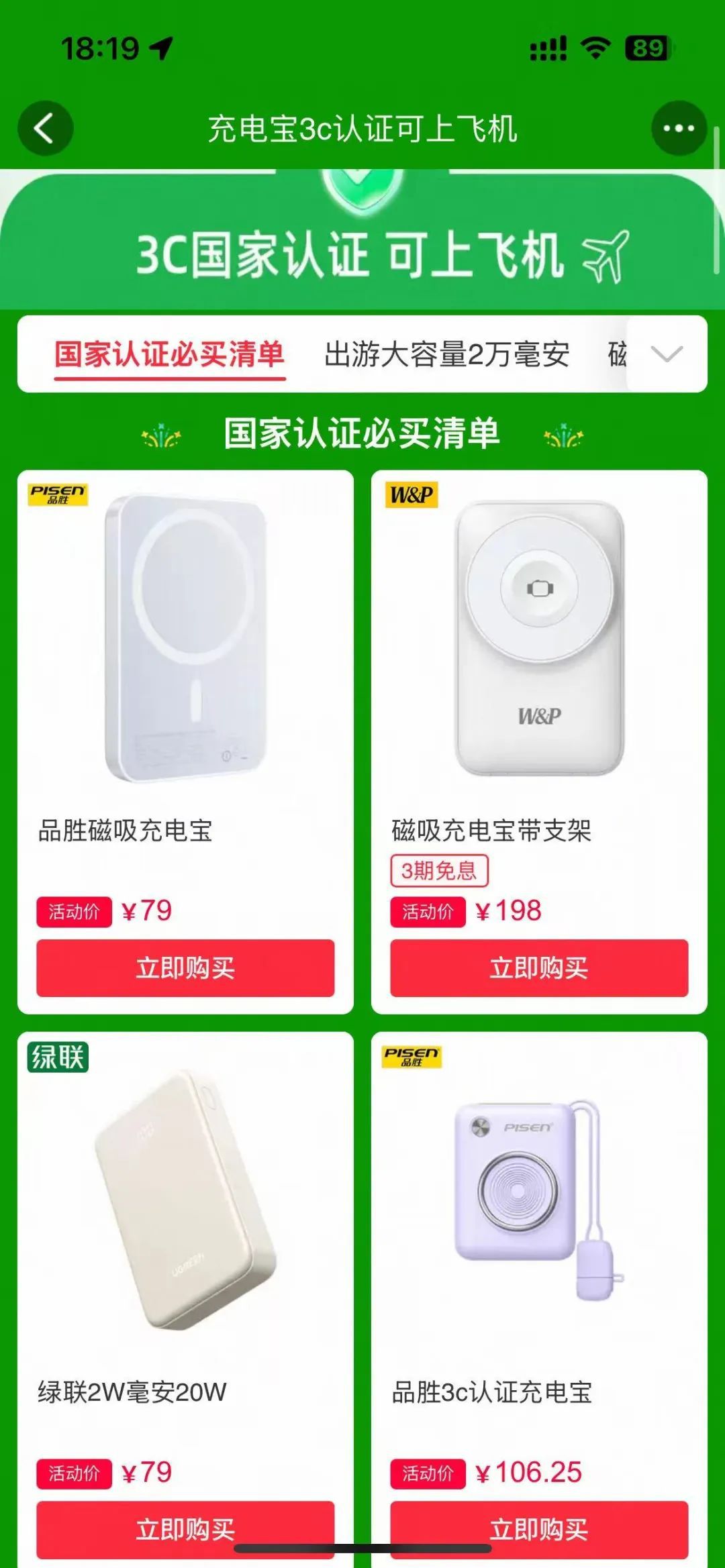 反应敏锐的电商平台已经开始为优质充电宝打通“绿色通道”。6月27日,记者在淘宝、京东等电商平台搜索“充电宝”时,搜索栏会自动弹出“充电宝3C认证可上飞机”等提示词,并推送链接直达品质充电宝线上购买专场,其中不乏品胜、绿联、华为、倍思等品牌充电宝。