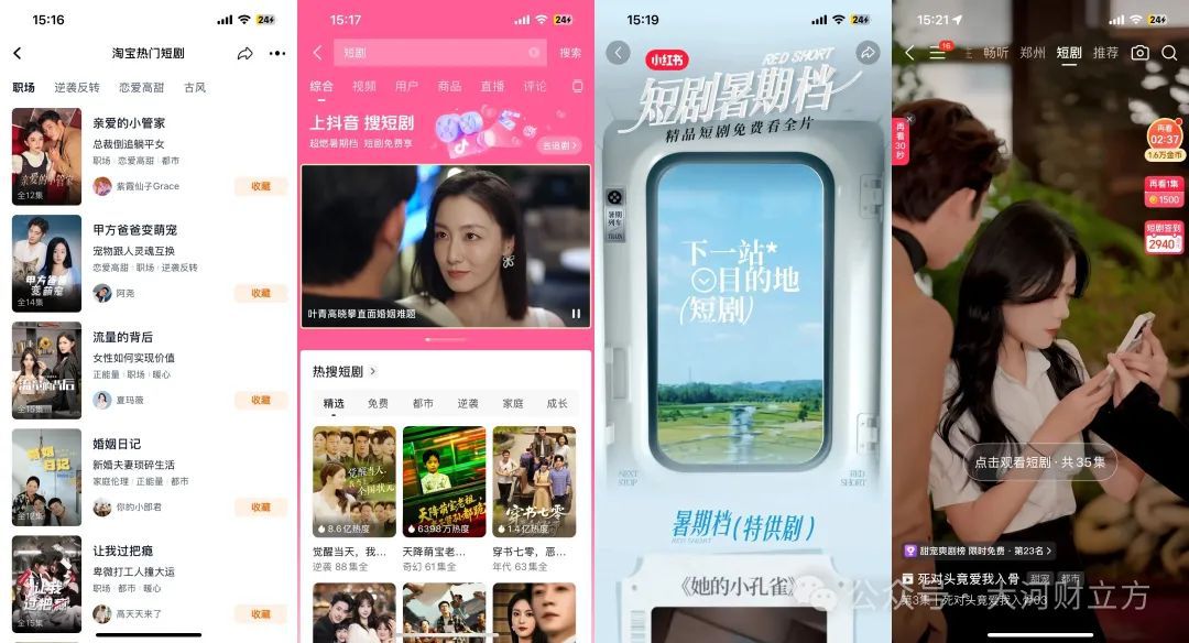 除抖音、快手等视频平台外,淘宝、小红书、美团等各大互联网平台,也纷纷加入战局,将短剧纳入自身生态,试图用免费短剧拉新、增强用户活跃度,寻找增长的第二曲线。