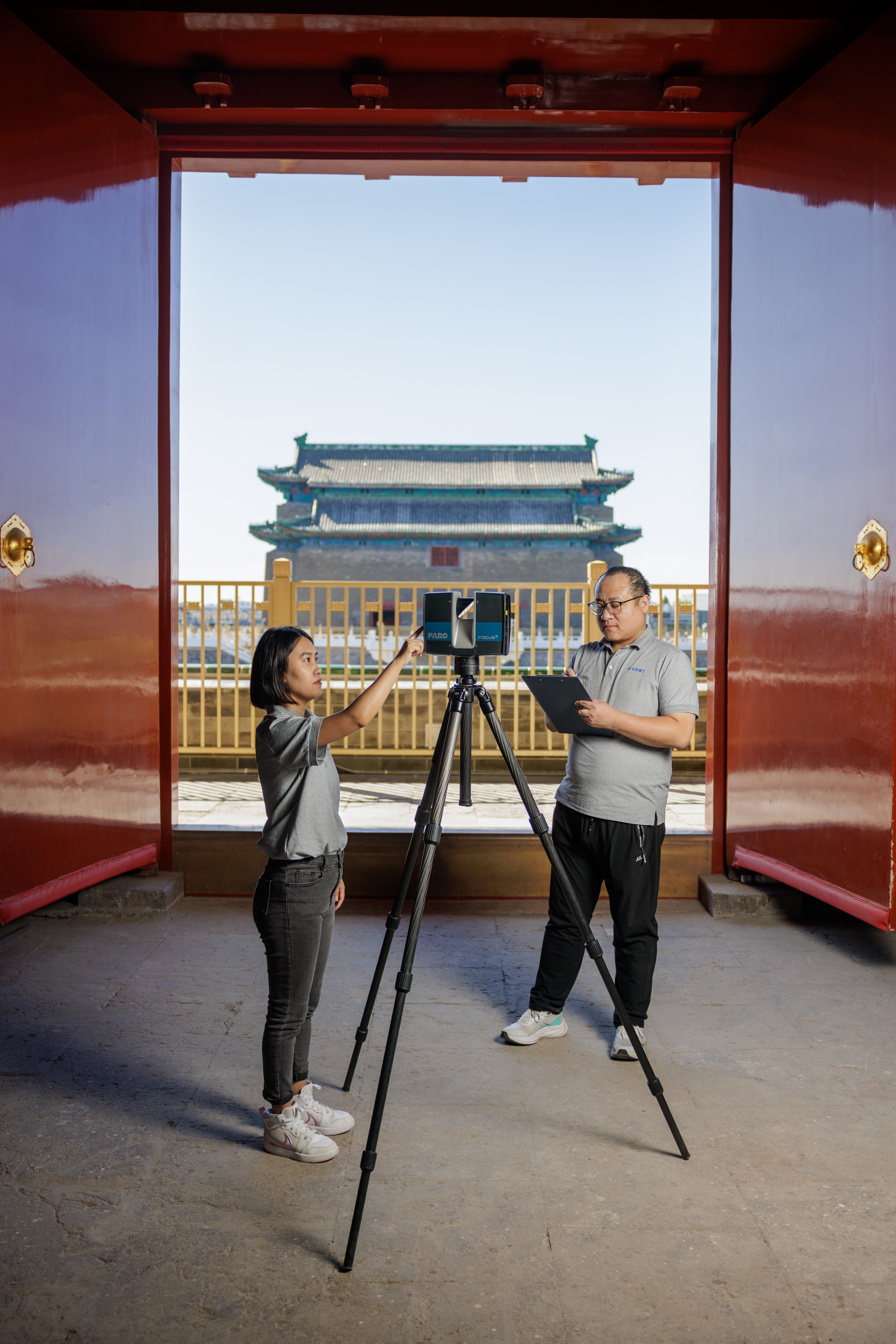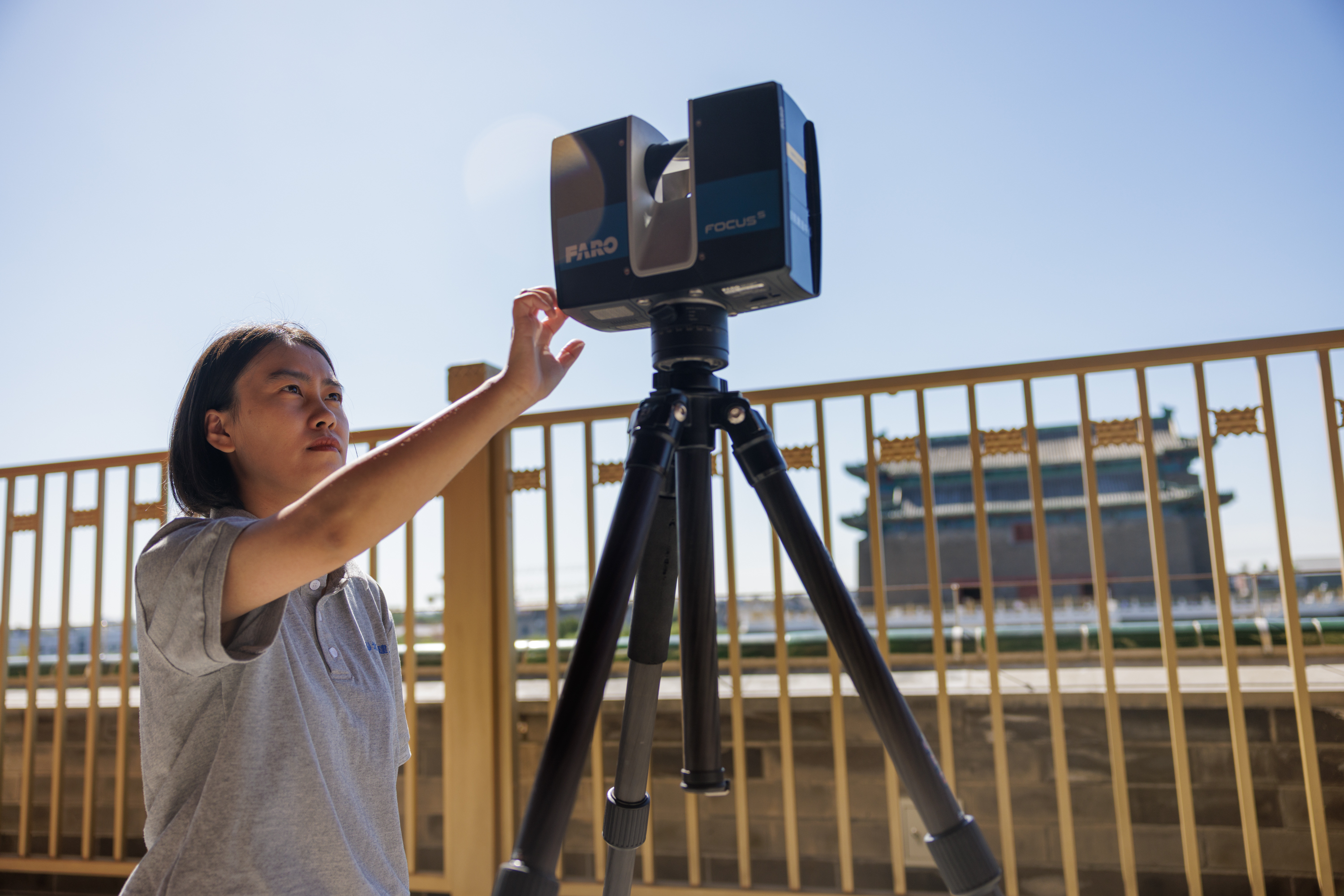 北京正阳门,工作人员正在进行数据采集工作。新京报记者 王子诚 摄