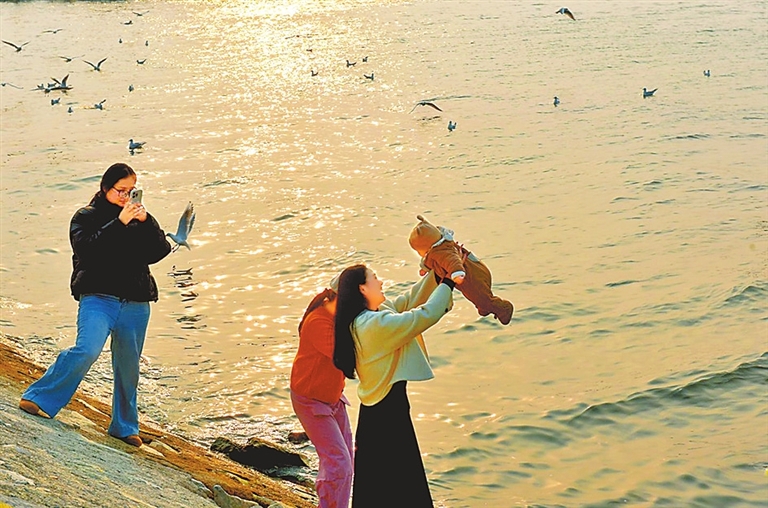 夕阳西下,银发护水队的老人们步履从容而来。队员李志勤轻轻拨开芦苇:“红嘴鸥爱在哪觅食,秋沙鸭习惯在哪筑巢,我们都清楚。”他们清理河湾、观察鸟类,余晖中身影长长,续写着守护的温情。