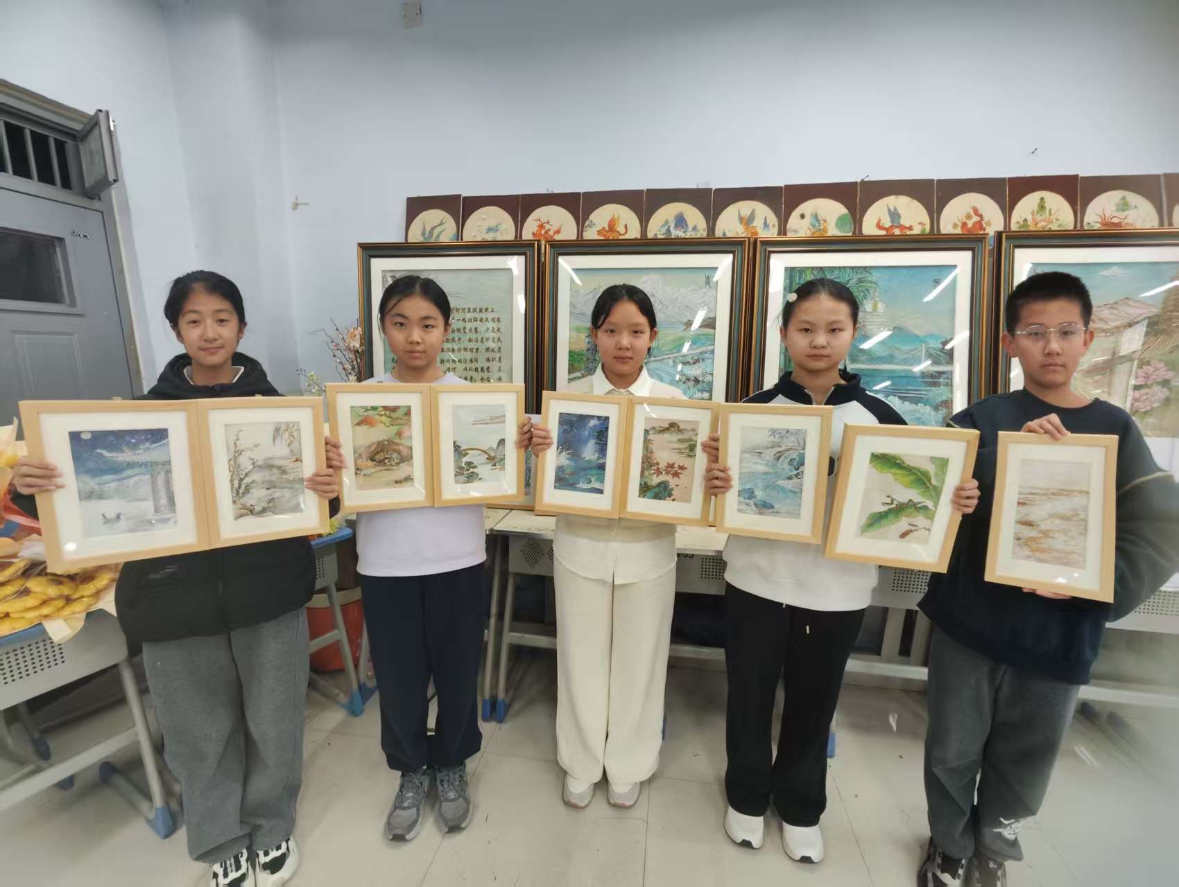 “每学期,我们都有一个文化主题。比如‘二十四节气’、‘山海经神兽’,或是眼前的‘郑州古八景’。”李焱指着展板上另一幅已完成的作品《汴河新柳》说,“学生不是机械地学习掐丝、点蓝,而是在创作‘清明柳色’这幅画的过程中,自然而然地去研究汴河的历史、柳树的形态、春天的色彩。技艺是舟,文化是它所承载的河流。”