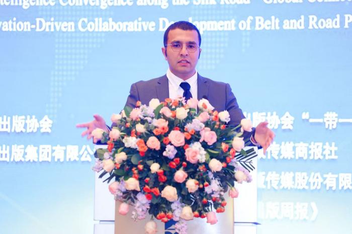 2025年8月,艾森在第六届“一带一路”出版合作经验交流会上发言。受访者供图
