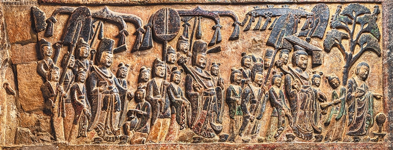 “巩县石窟与龙门石窟一脉相承、同出一源,堪称北魏石窟艺术的‘姊妹窟’。虽规模不及龙门石窟,却是北魏时期极具代表性的重要石窟遗存。”历史文化学者阎铁成告诉记者,石窟内藏有诸多稀世瑰宝,其中,全国现存唯一完整的《帝后礼佛图》,堪称当之无愧的镇窟之宝。尤为珍贵的是,龙门石窟同类礼佛石刻早已损毁不存,而巩县石窟其中三窟仍完好留存15幅完整礼佛图,以石刻形式全景再现北魏皇家礼佛的恢宏盛典。画面中帝王威仪、后妃端庄、侍从有序,人物神态、服饰冠冕、仪仗规制纤毫毕现,如一部刻在石头上的北魏社会生活史,再现了当时的典章制度、社会风俗与审美风尚。
