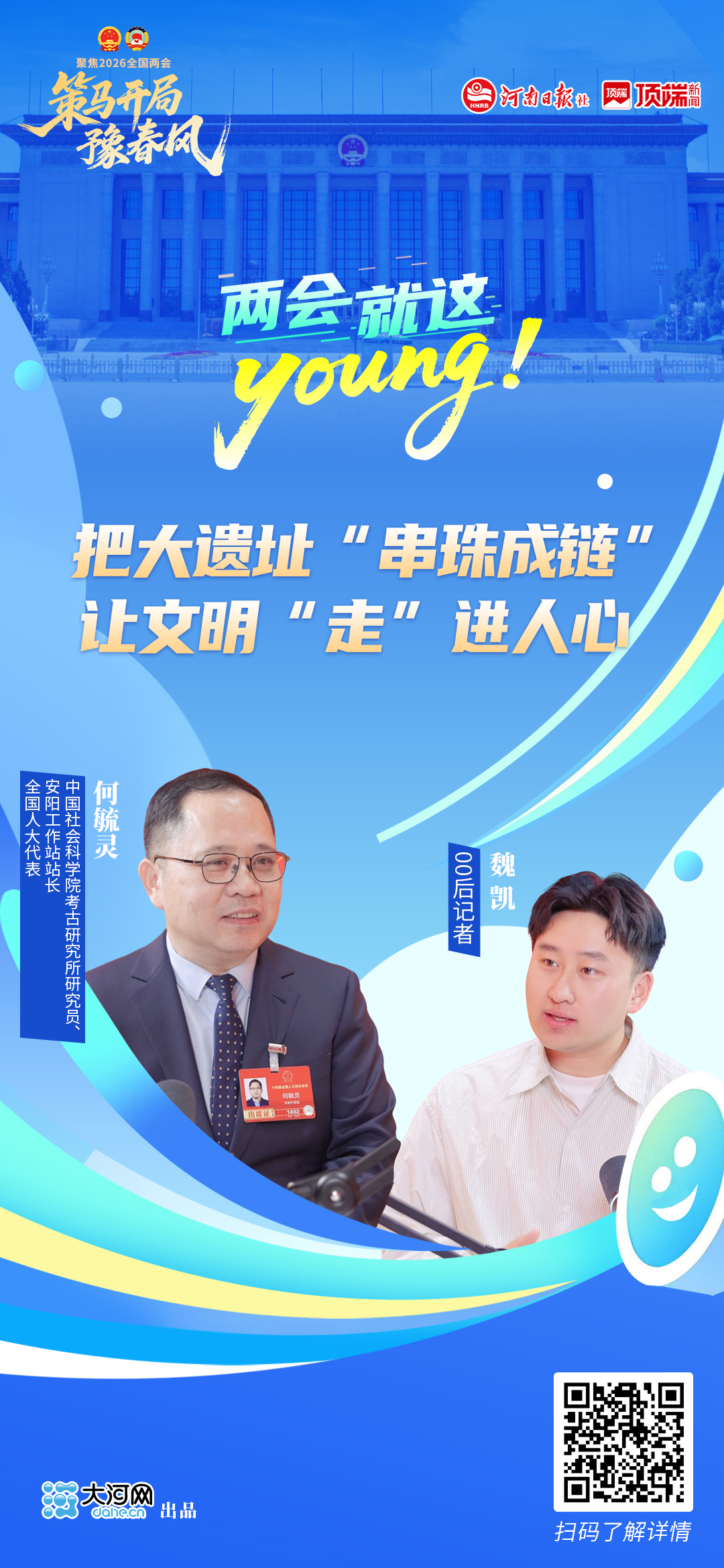 大河网讯 “欢迎大家到殷墟来看甲骨文,找找三千年前的字,也找找自己的根。”今年全国两会期间,全国人大代表、中国社会科学院考古研究所安阳工作站(殷墟)站长何毓灵,带着他对“何以中国”的考古解读走进《两会,就这Young!》,向年轻人发出邀约。
