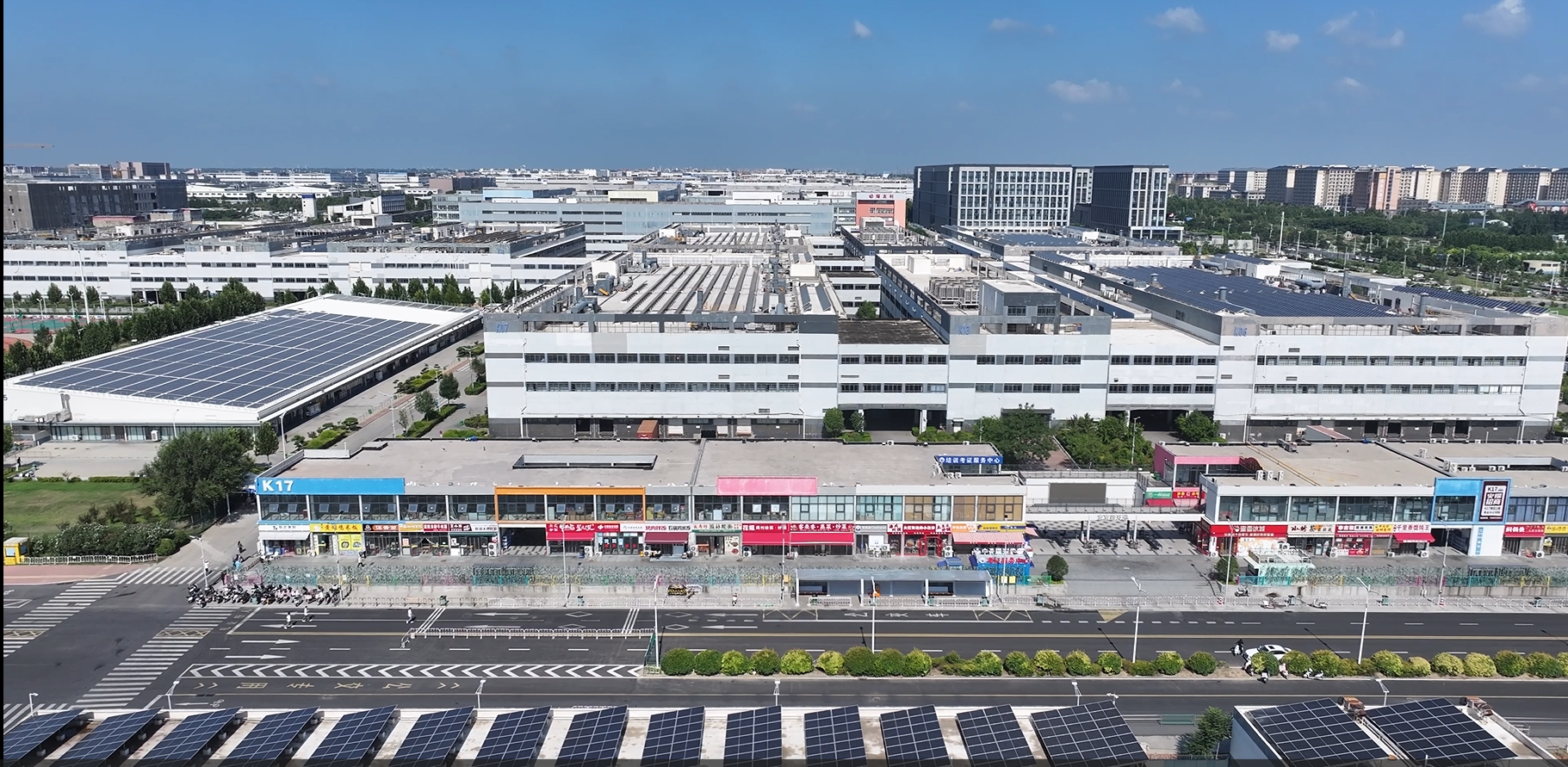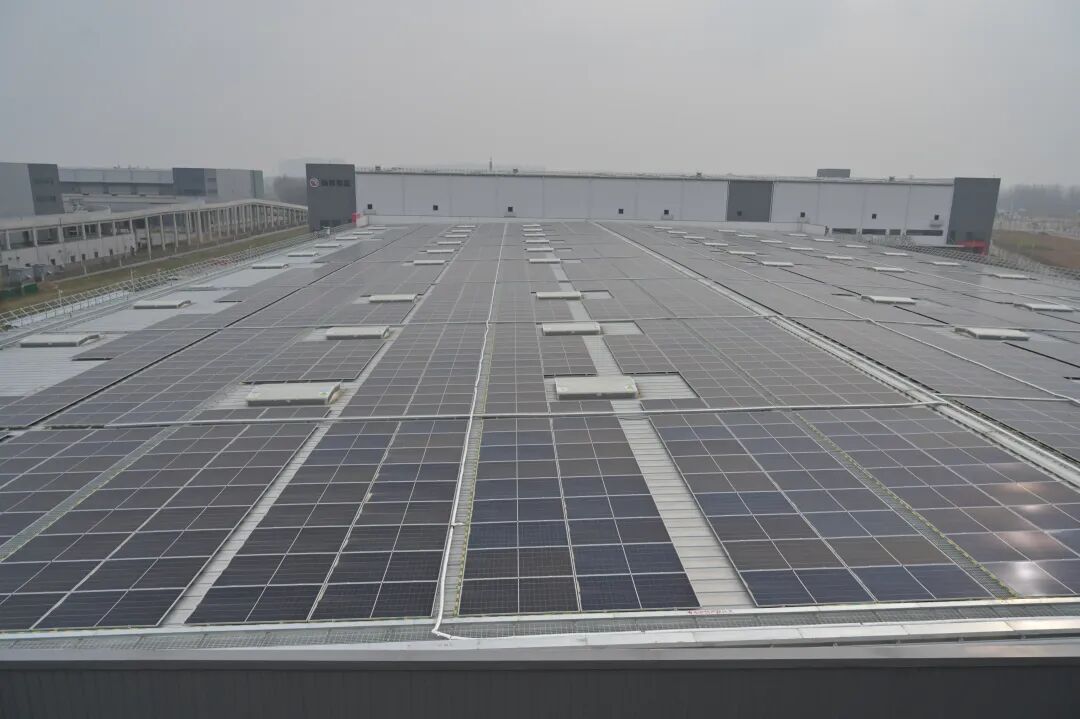 走进润田供应链公司的厂区,抬头仰望,昔日空旷闲置的彩钢瓦房顶如今被整齐划一的光伏矩阵覆盖,成为一道独特的工业风景线。