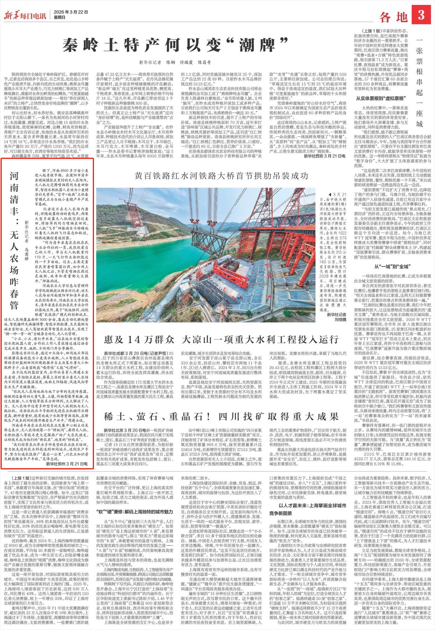 眼下,河南8500多万亩小麦进入起身拔节期。在濮阳市清丰县固城镇张庄里村的无人农场内,无人机大范围喷洒药剂为麦田除草,智控水肥机器人自动为小麦精准补充营养,“空中+地面”立体春管模式正为当地小麦稳产丰产筑牢基础。