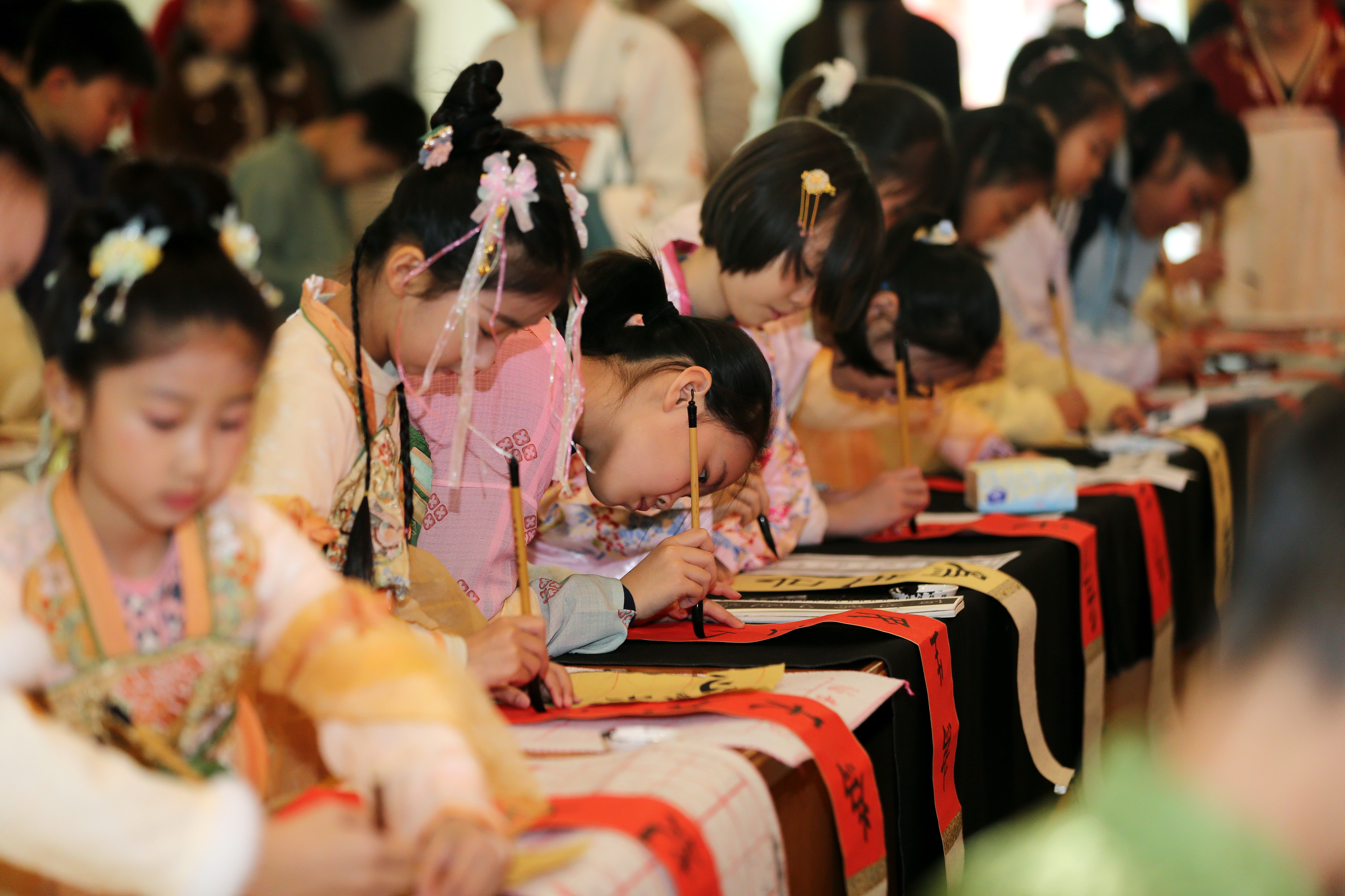 河南省文联党组书记方启雄,省文联副主席、省书协主席吴行,省文联副主席、省书协副主席米闹,省书协副主席、秘书长姜宝平,省文艺评论家协会副主席赵慎珠等领导嘉宾与身着汉服的青少年齐聚一堂,共赴这场文化之约。