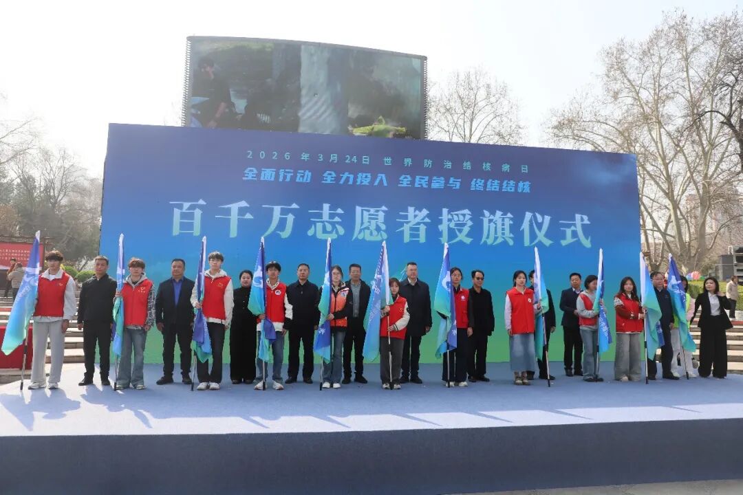 为响应国家疾控局、国家卫健委、共青团中央《关于推动百千万志愿者结核病防治知识传播活动高质量发展的指导意见》号召,活动现场举行“百千万志愿者”结核病防治传播团队授旗仪式,与会领导为郑州大学、河南中医药大学、河南工业大学等12所高校志愿者团队代表授旗,进一步壮大防控宣传队伍,凝聚青年力量,助力健康河南、健康郑州建设。