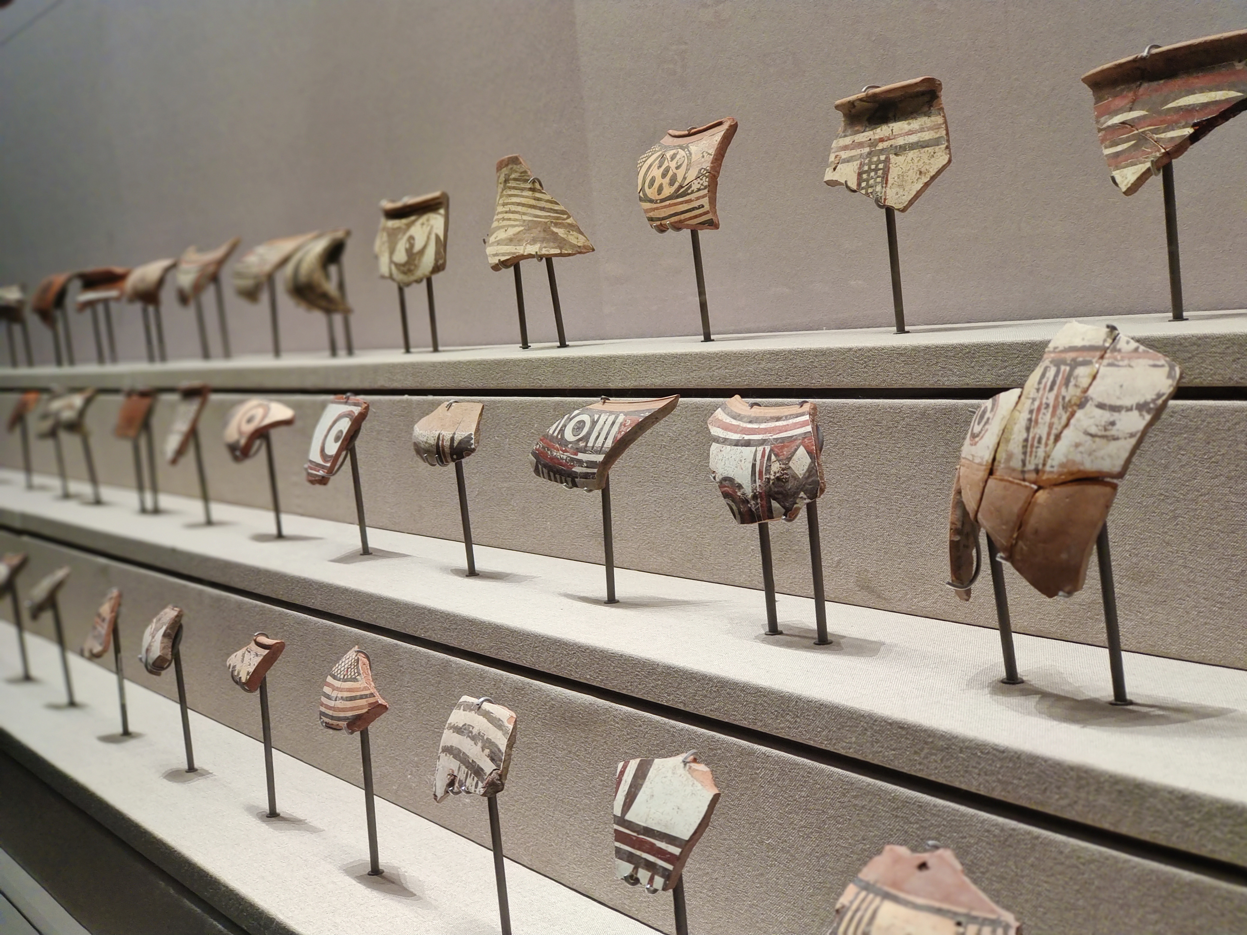 展柜内陈设的陶片。