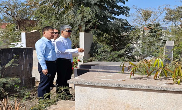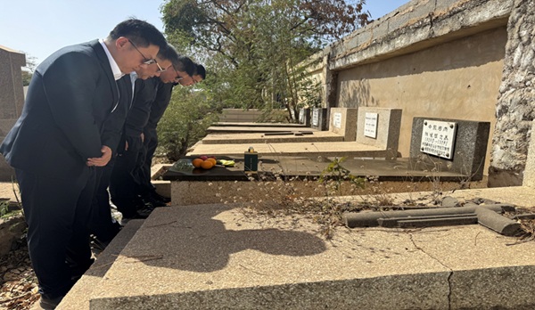 当日,中国驻塞内加尔使馆亦在同一公墓组织清明祭扫。使馆大使及参赞一行在活动结束后,专程来到我公司三位先辈墓前,详细了解他们生平事迹,对他们为中塞友好事业和集团海外建设事业作出的重要贡献表示高度赞扬。